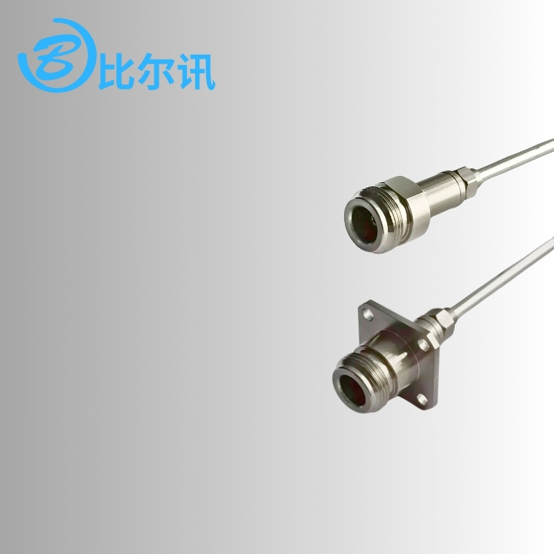 N母头-N法兰母头低损稳相半刚线缆组件, 配接141K半刚线缆, DC-18GHz