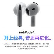 Apple/苹果 AirPods 4(支持主动降噪)搭配无线充电盒(USB-C)苹果耳机 蓝牙耳机适用iPhone/iPad 四代